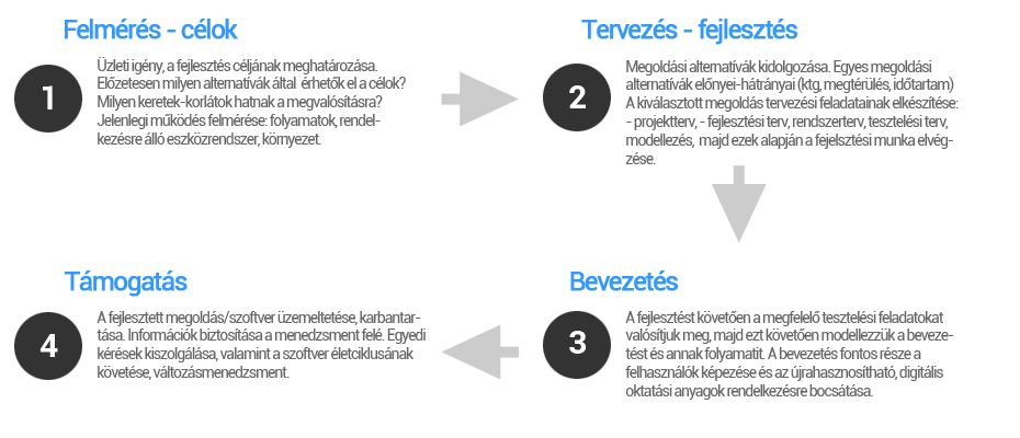 A cégvezetők gyakran szembesülnek olyan speciális igényekkel, amelyek megkönnyítenék a döntéshozást vagy egyszerűen csak az adminisztrációt, mindennapos ügyvitelt. Esetenként csak felxibilsebb, földrajzi helytől független szolgáltatások jelennek meg üzleti elvárásként. Egyedi web-és mobilalkalmazás fejlesztési szolgáltatásunkkal ezeket az üzleti igényeket kívánjuk kielégíteni. Megoldásaink támogatnak minden elterjedtebb böngészőtípust és mobilplatformot, legyen szó egy egyszerűbb web alapú szolgáltatásról vagy akár egy komplex üzleti intelligenciáról. Általános porjekt-hatókör, mérföldkövek, folyamatok: